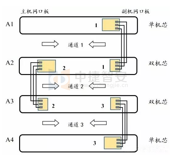 (2)按照主機與副機的聯(lián)機線柱標識,按標識一一對應(yīng)接好,參考下圖。